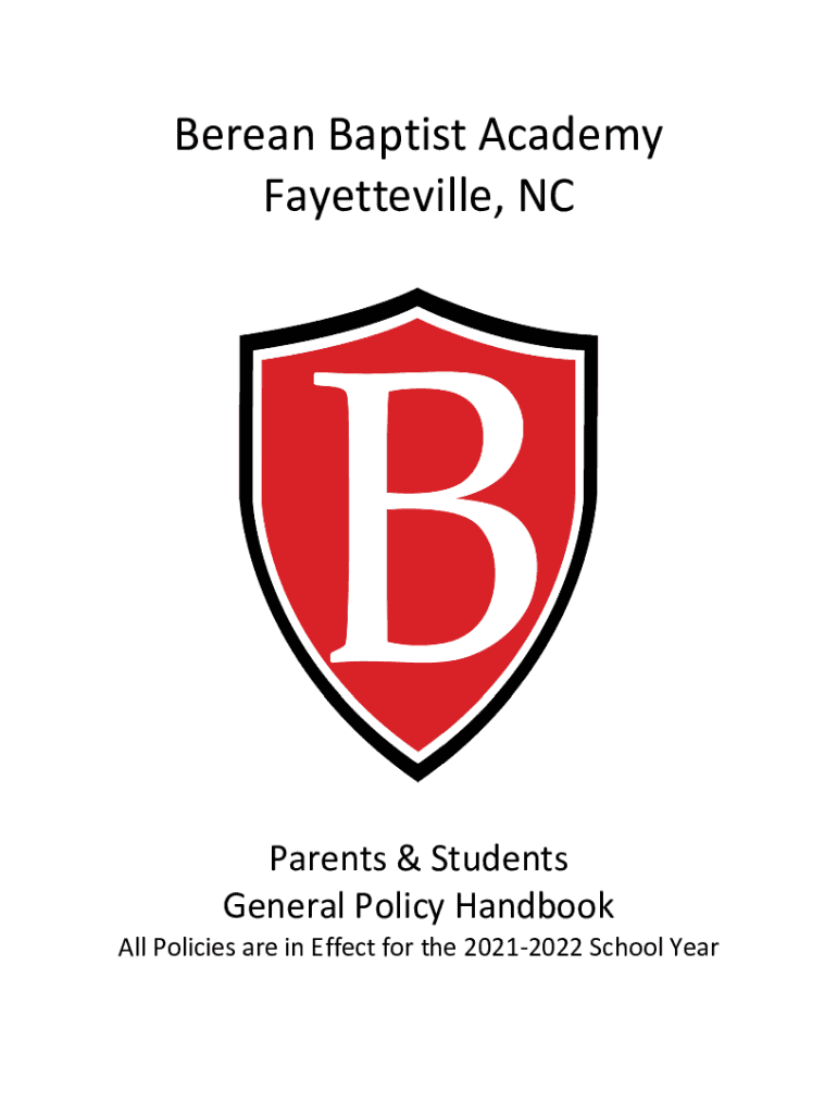Barn Baptist Academy Fayetteville, Parents & Students General Policy Handbook All Policies are in Effect for the 20212022 School Year LETTER FROM PASTOR SEAN, SENIOR PASTOR OF BER EAN ___ 4 A LETTER