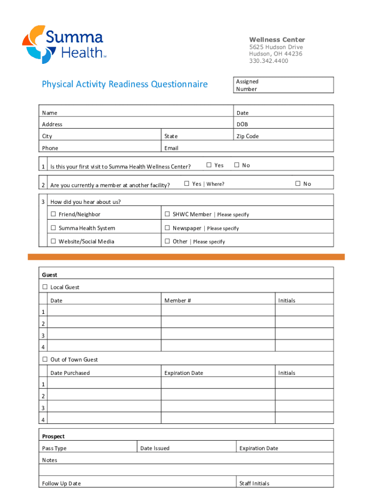 330.342.4400Physical Activity Readiness QuestionnaireAssigned