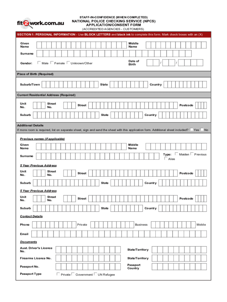 STAFFINCONFIDENCE (WHEN COMPLETED)NATIONAL POLICE CHECKING SERVICE (NPCs)