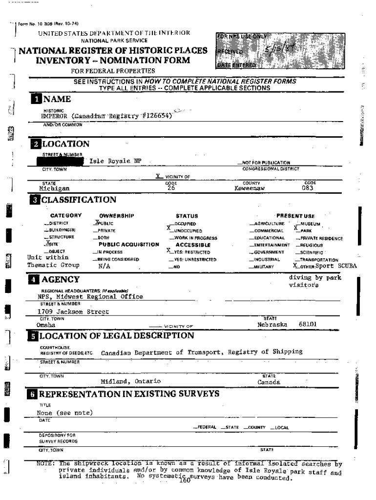 Form No. 10306 (Rev. 1074)UNITED STATES DEPARTMENT OF THE INTERIOR NATIONAL PARK SERVICENATIONAL REGISTER OF HISTORIC PLACES INVENTORY NOMINATION FORM FOR FEDERAL PROPERTIES SEE INSTRUCTIONS IN HOW