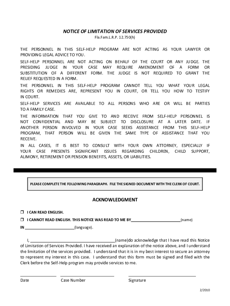 NOTICEOFLIMITATIONOFSERVICESPROVIDED