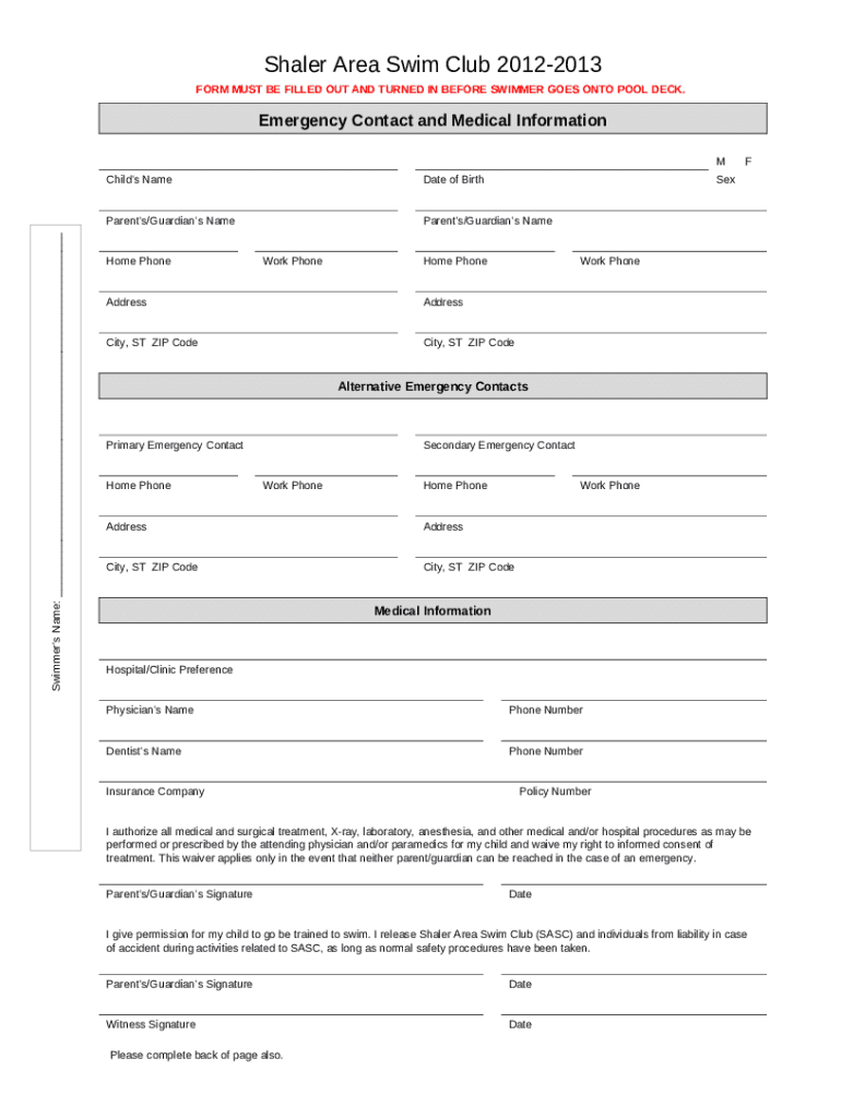How to fill Emergency Contact and Medical Ination for a Child M ... word template