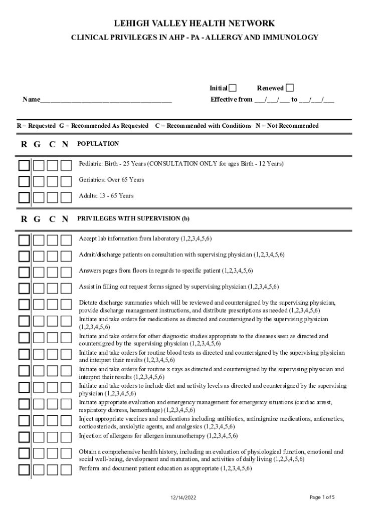 CLINICAL PRIVILEGES IN HP PA ALLERGY AND IMMUNOLOGYInitial