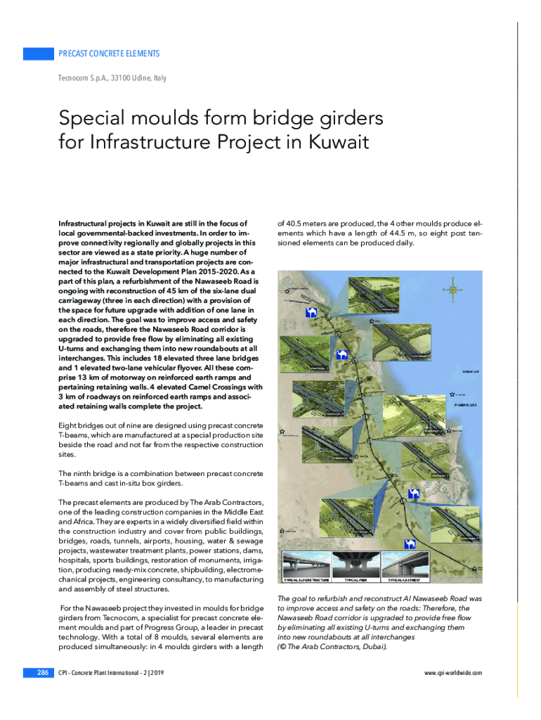06bPrecast_264309_en.exp_Layout 1 06.03.19 09:19 Sate 286PRECAST CONCRETE ELEMENTS Tearoom S.p.A., 33100 Udine, ItalySpecial molds form bridge girders for Infrastructure Project in KuwaitInfrastructural