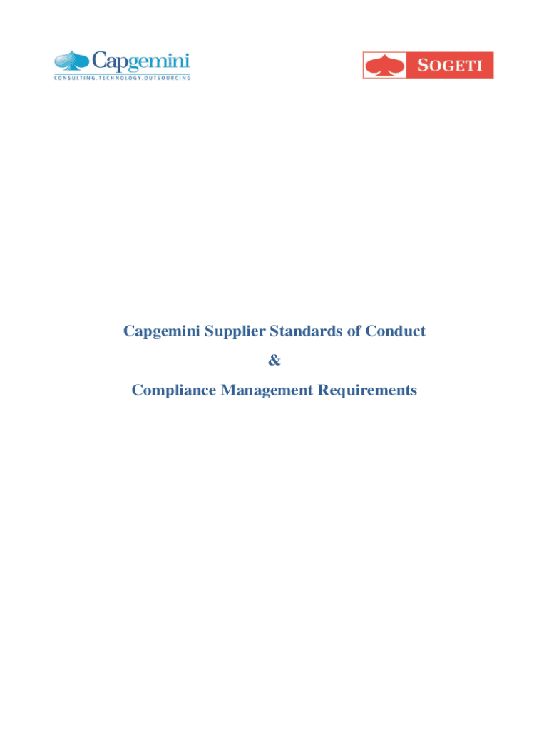 Capgemini Supplier Standards of Conduct & Compliance Management RequirementsTable of Contents Document control ..........................................................................................................................................