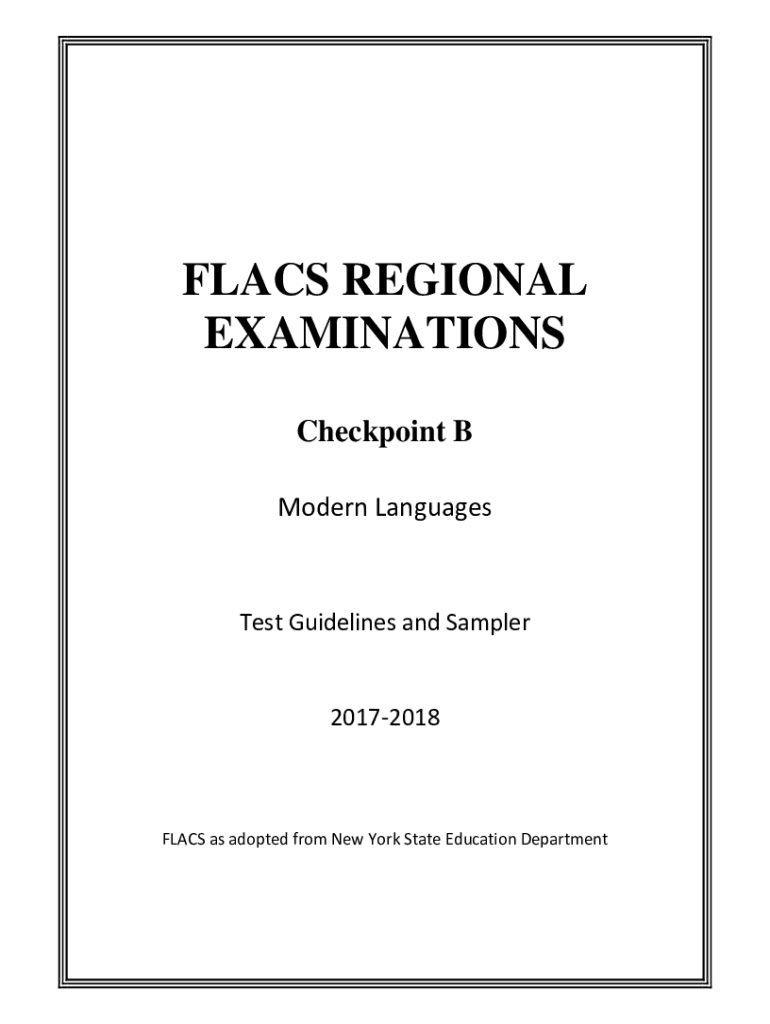 FLAGS REGIONAL EXAMINATIONS Checkpoint B Modern LanguagesTest Guidelines and Sampler20172018FLACS as adopted from New York State Education Departmental 1: SpeakingDIRECTIONS FOR ADMINISTRATION Description