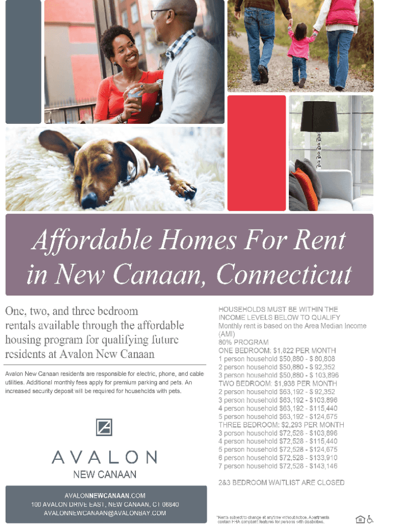 Affordable Homes For Rent in New Canaan, Connecticut One, two, and three bedroom rentals available through the affordable housing program for qualifying future residents at A val on New Canaan Avalon