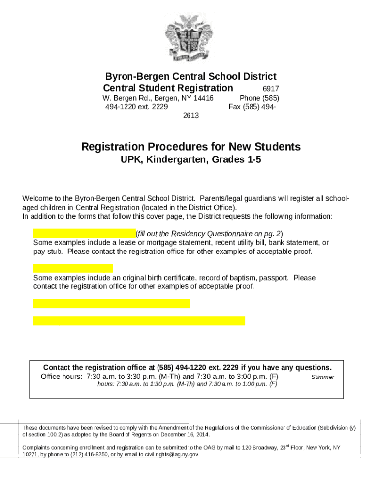 Instructions for the form Student Registration - Byron-Bergen Central Schools