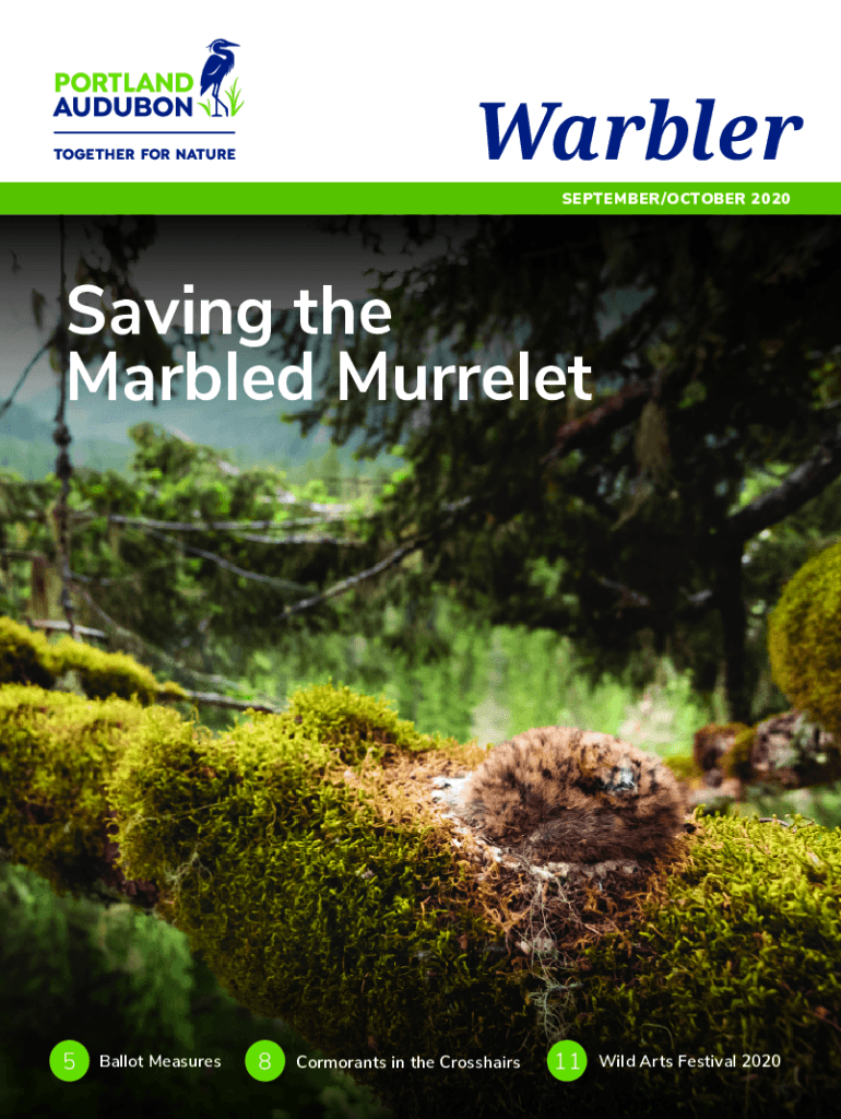 Warbler SEPTEMBER/OCTOBER 2020Saving the Marbled Murrelet5Ballot Measures8Cormorants in the Crosshairs11Wild Arts Festival 2020IN THIS ISSUER OUR EXECUTIVE DIRECTORLooking Back to Move Forward by