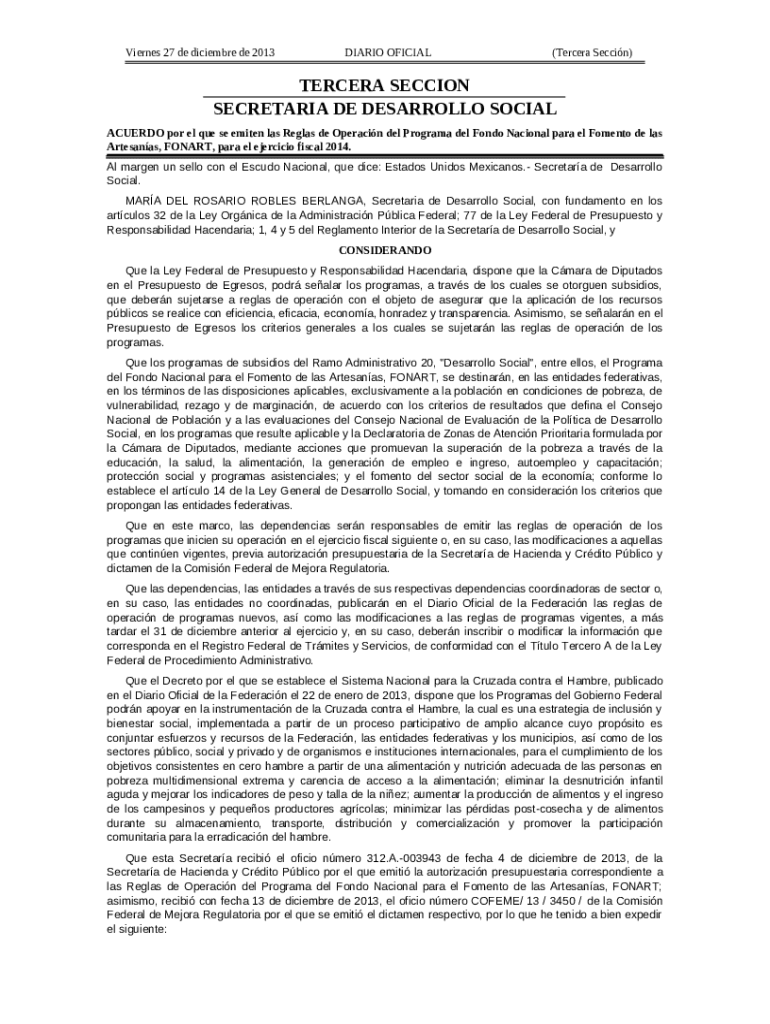 What is ACUERDO por el que se emiten las Reglas de Operacin de ... Form?