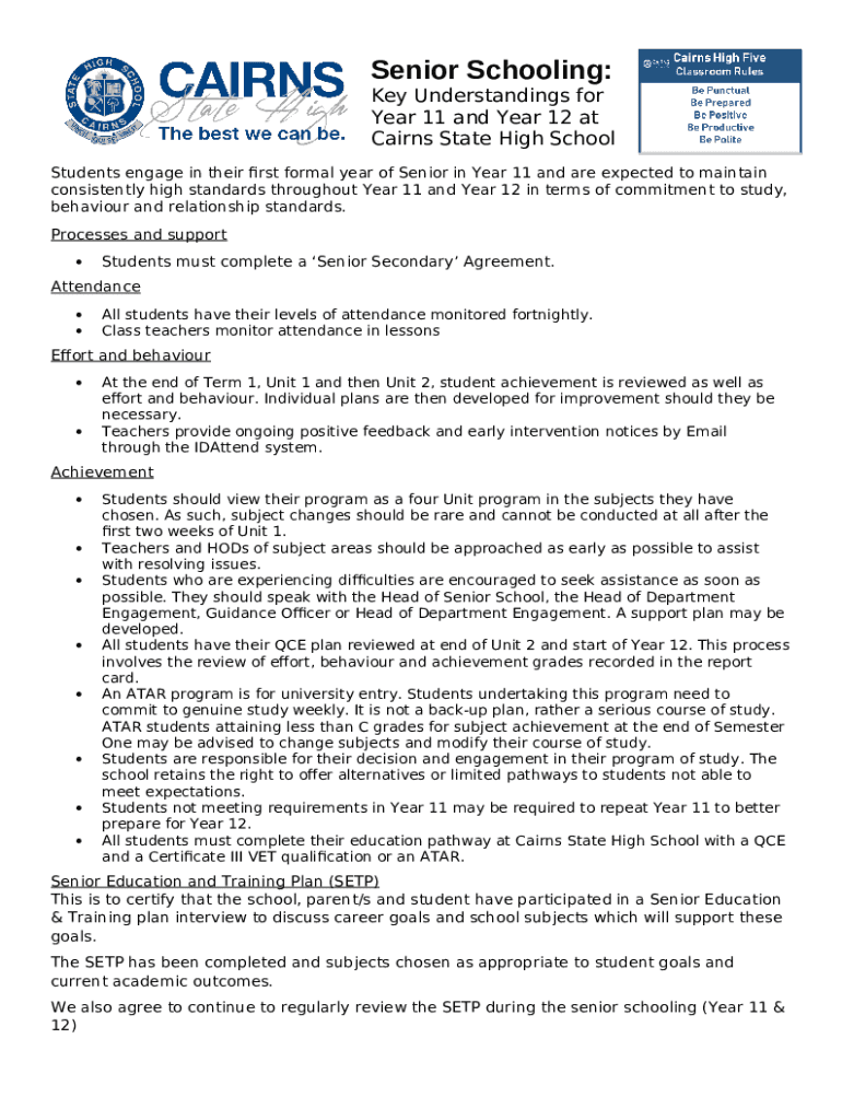 Senior Subject Guide v1.1 - Cairns State High School - cairnsshs eq edu: frequently asked questions