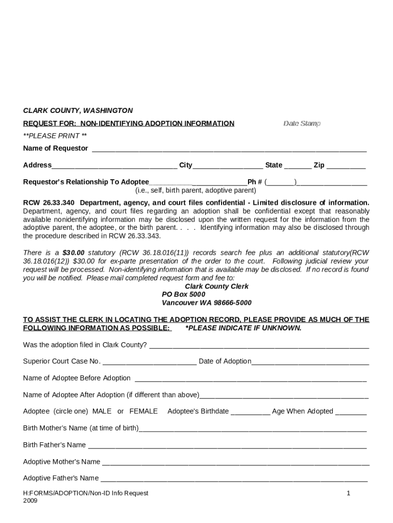 Frequently asked questions about Non-identifying Adoption Ination Request - King County template