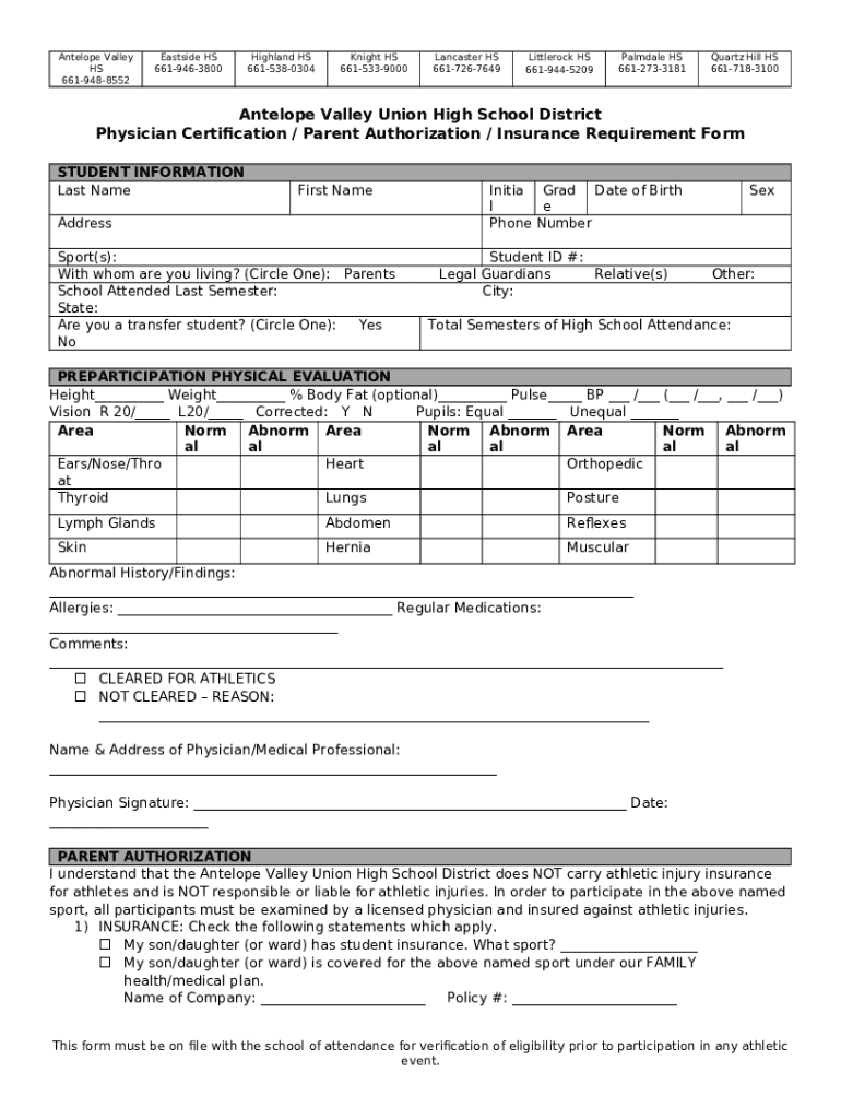 How to fill AVUHSD Physical - Lancaster High School word template