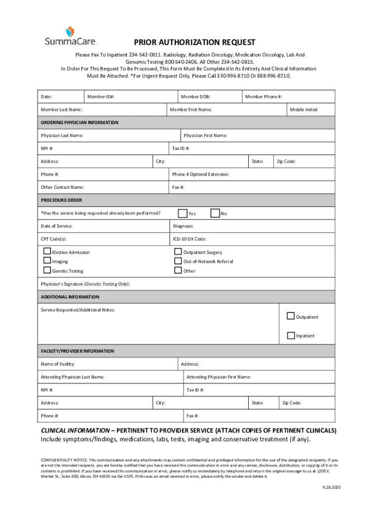 PRIOR AUTHORIZATION REQUEST Please Fax To Inpatient 2345420811. Radiology, Radiation Oncology, Medication Oncology, Lab And Genomic Testing 8005402406. All Other 2345420815. In Order For This Request