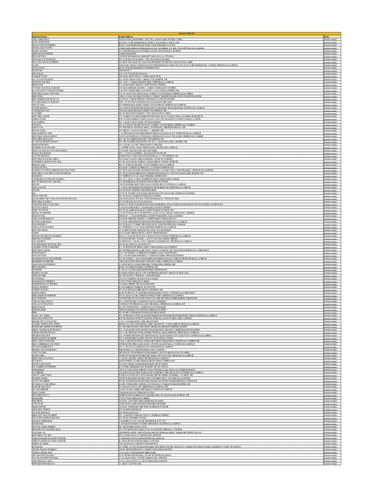 Business Name ONE HOME RENO ELITE WORKSHOP DELICIOUS ENTERPRISE GLORIA JEAN COFFEE SENSE OF SCENT ARRIVAL ENTERPRISE SEA KITCHEN GTM ART & STATIONERY SUN JAY Café & CATERING PLAQUE HUD CHEW G KITCHEN