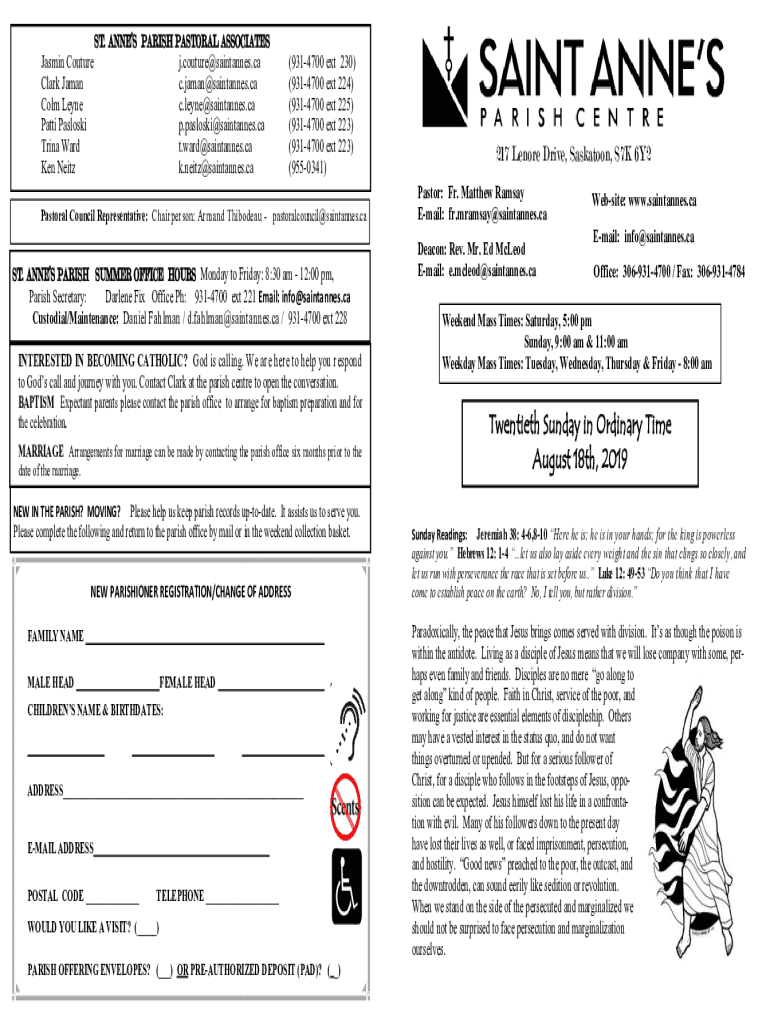 No information needs to be reported for the nineteenth Sunday in Ordinary Time.