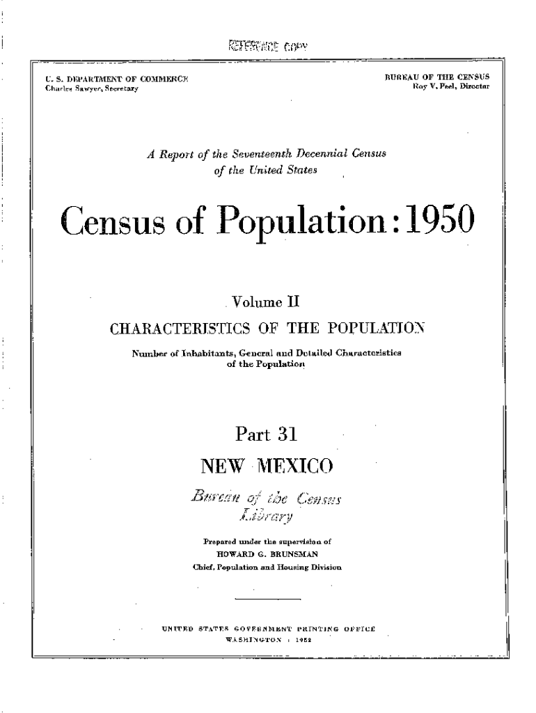 Charles Sawyer, Secretary Report of the Seventeenth Decennial Census