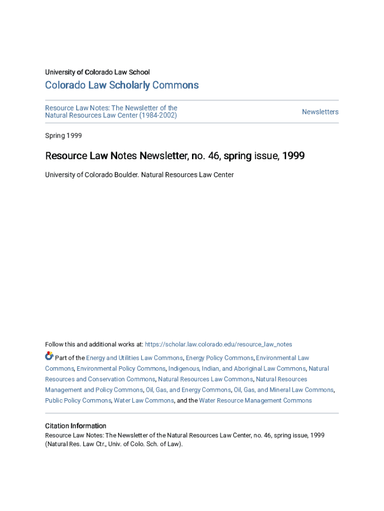 University of Colorado Law School Colorado Law Scholarly Commons Resource Law Notes: The Newsletter of the Natural Resources Law Center (19842002)NewslettersSpring 1999Resource Law Notes Newsletter,
