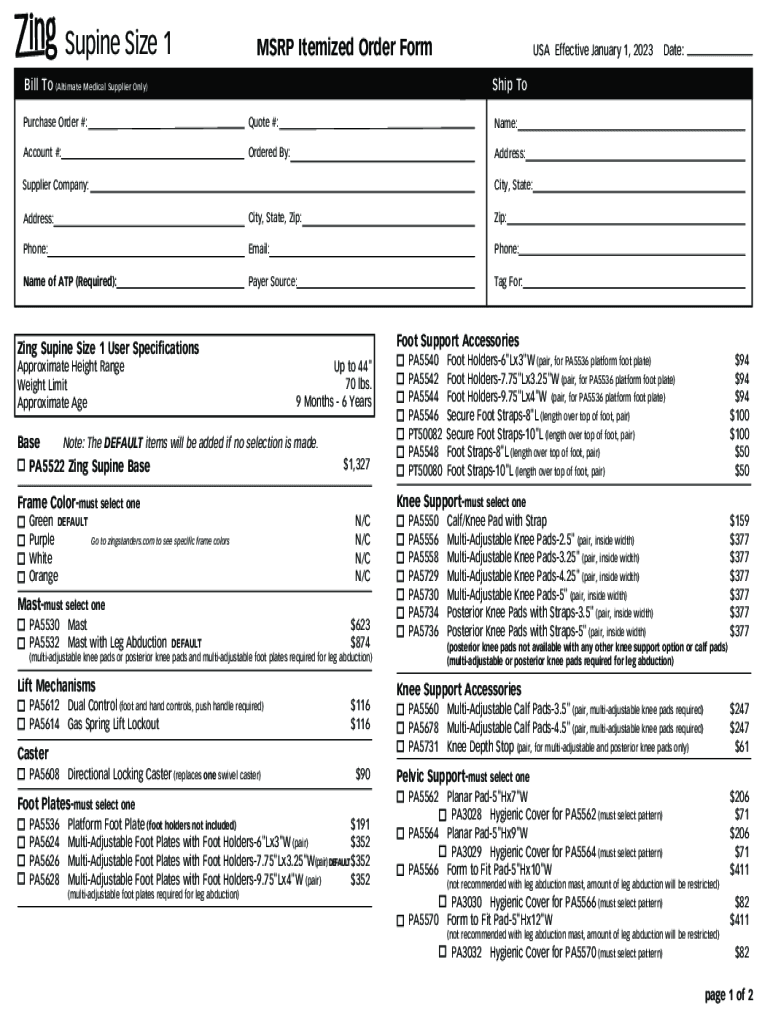 Supine Size 1MSRP Itemized Order Form Bill To (Ultimate Medical Supplier Only)USA Effective January 1, 2023Ship Purchase Order #:Quote #:Name:Account #:Ordered By:Address:City, State:Supplier Company:Address:City,