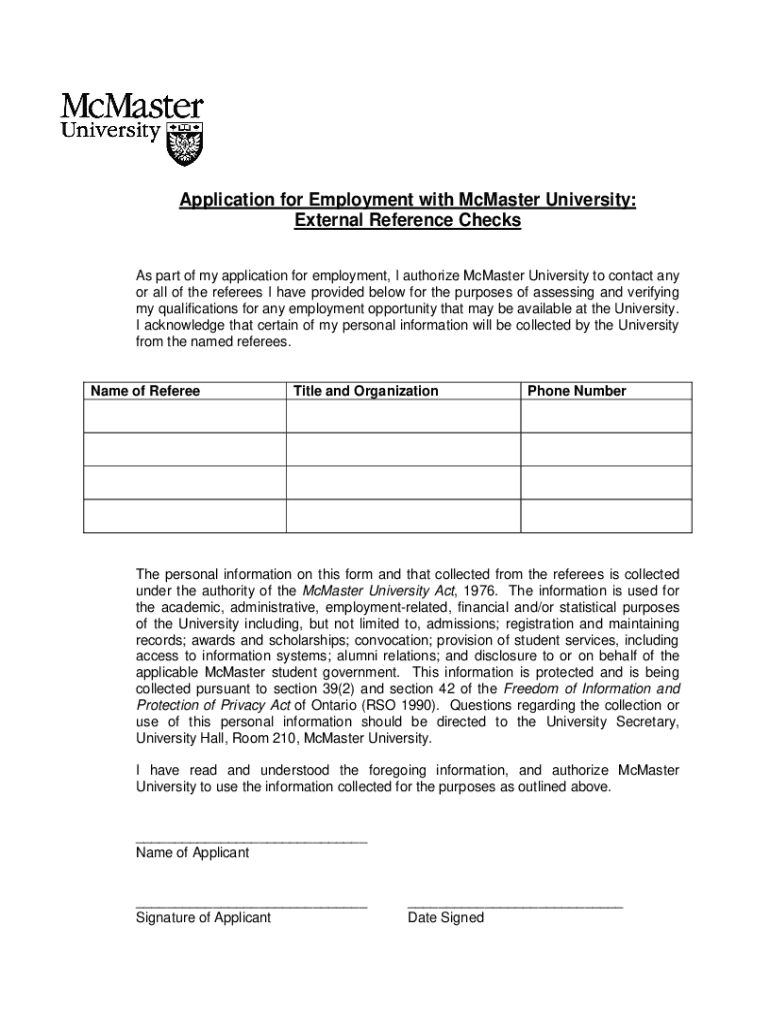 Application for Employment with McMaster University: