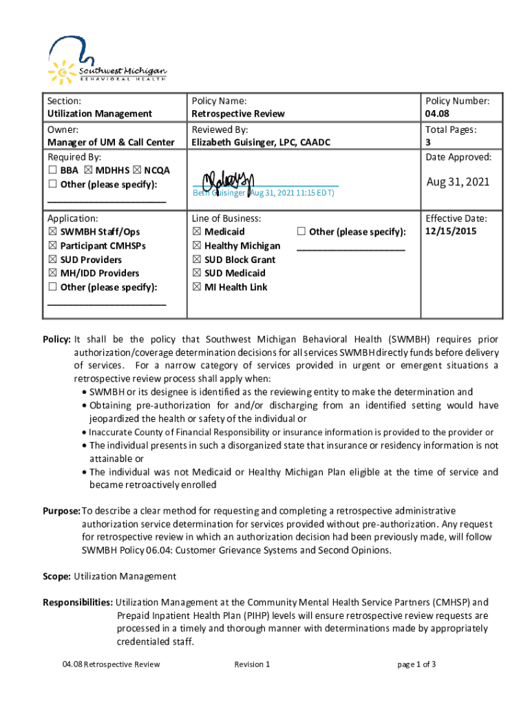 0408 Retrospective Review Sop is not the form you're looking for?Search for another form here.