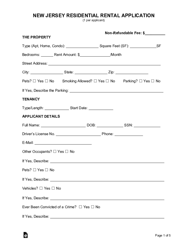 Anyone looking to rent a property in New Jersey will need to fill out a rental application.