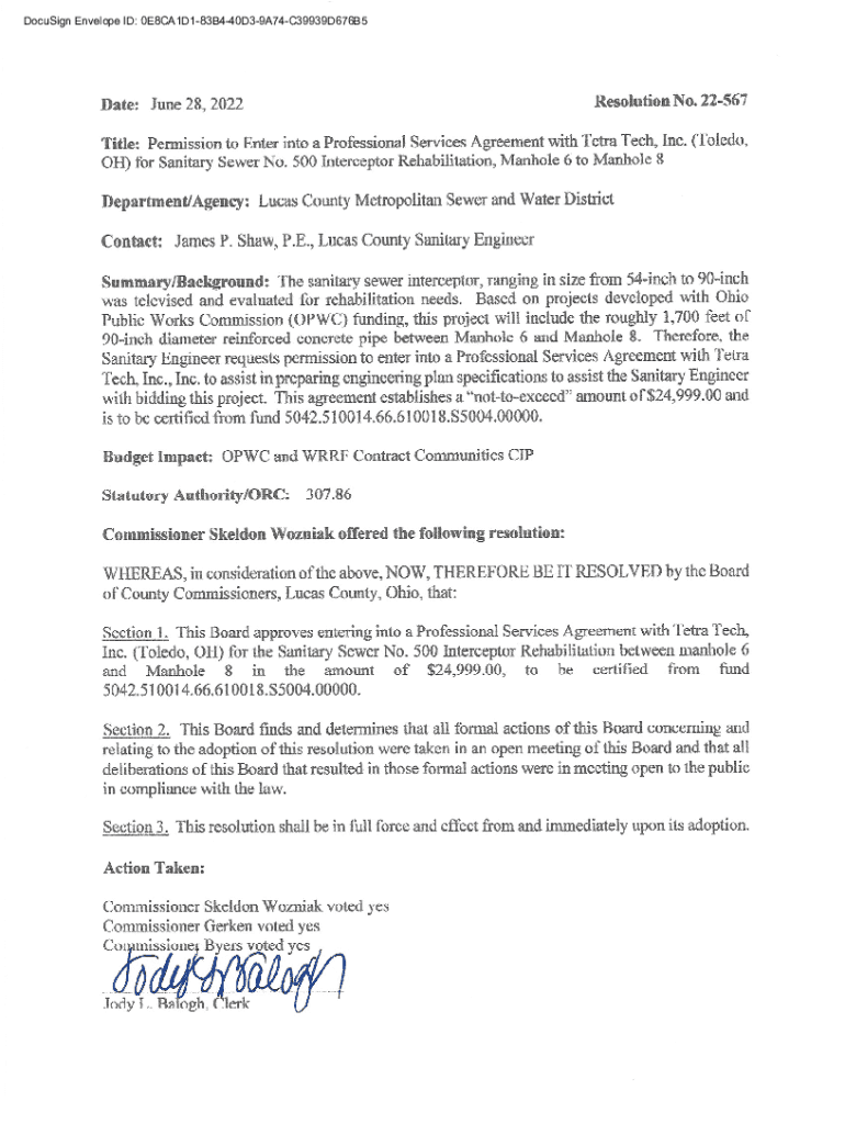 DocuSign Envelope ID: 0E8CA1D183B440D39A74C39939D676B5DocuSign Envelope ID: 0E8CA1D183B440D39A74C39939D676B5AGREEMENT Lucas County Form 28th day of ___, June THIS AGREEMENT, made the ___ 2022, in