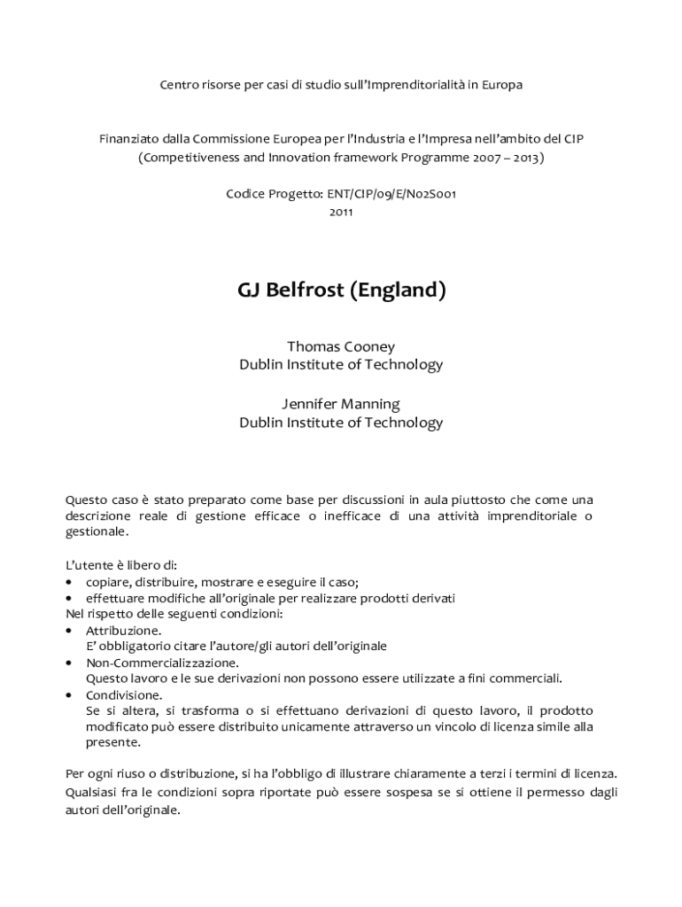 CENTR remorse per case DI studio sullImprenditorialit in EuropaFinanziato Dallas Commission European per industrial e impress nellambito Del CIP