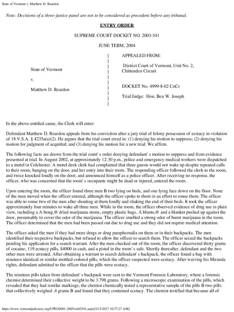 Get the free State of Vermont v. Matthew D. Reardon