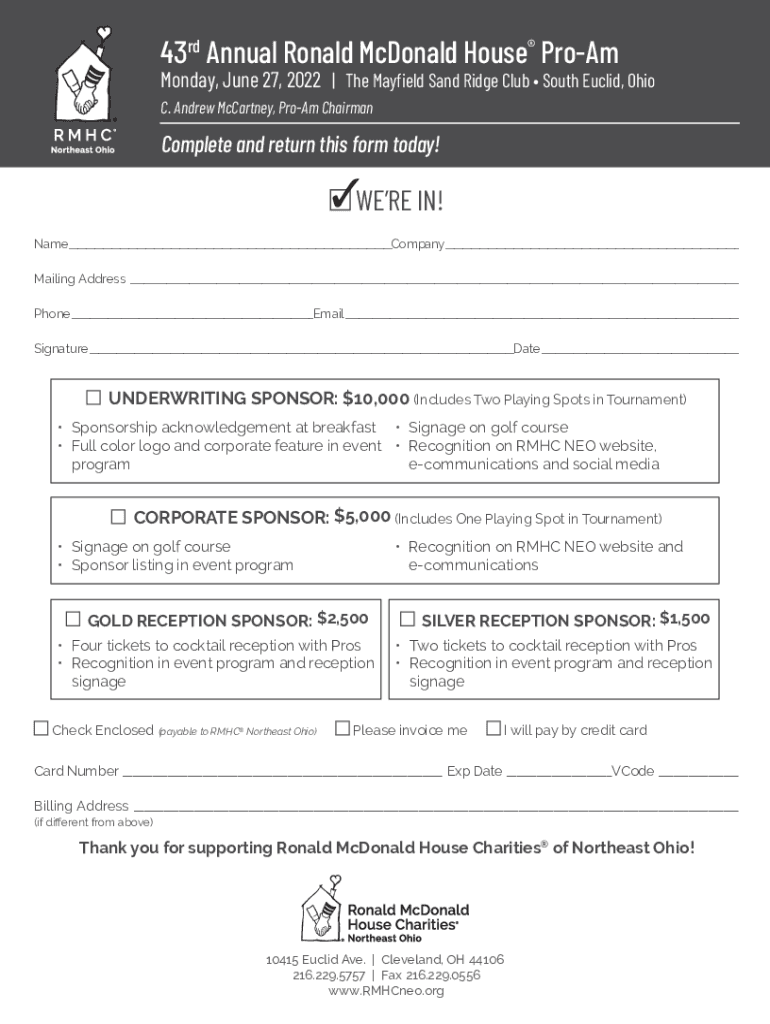 43rd Annual Ronald McDonald House ProAmMonday, June 27, 2022 | The Mayfield Sand Ridge Club South Euclid, Ohio