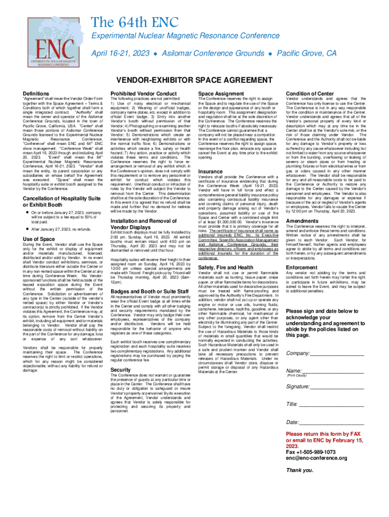 April 1621, 2023Asilomar Conference Grounds Pacific Grove, CAVENDOREXHIBITOR SPACE AGREEMENT