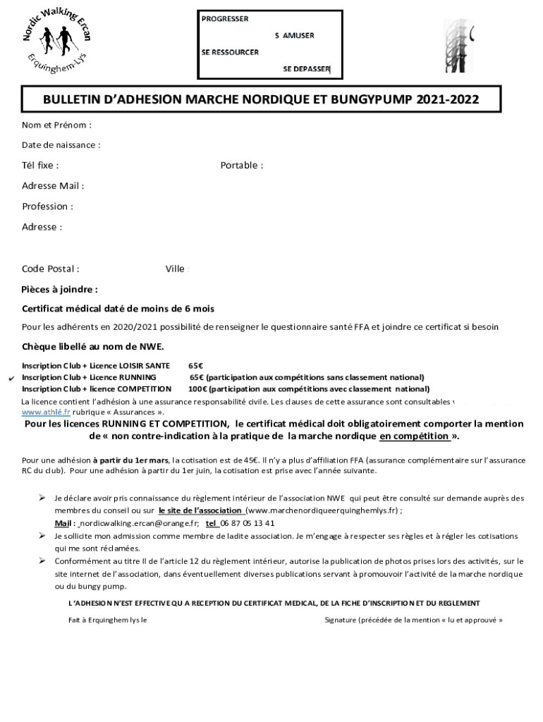 Comment remplir bulletin dadhesion marche nordique