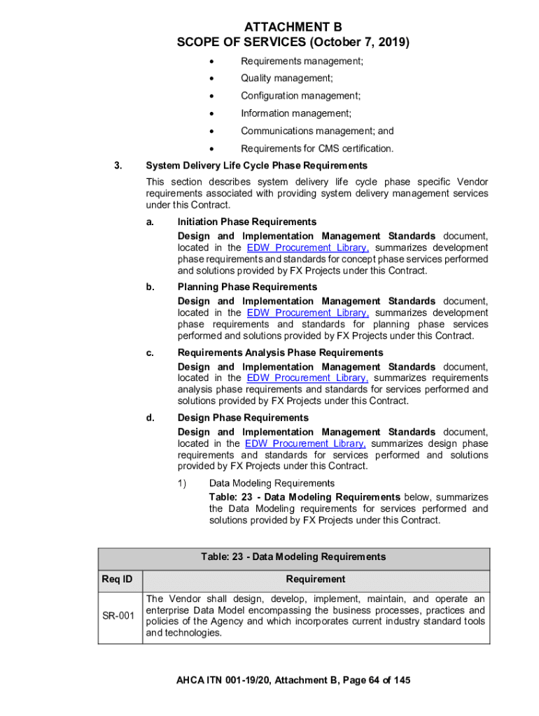 ATTACHMENT B SCOPE OF SERVICES (October 7, 2019) Requirements management;Quality management;Configuration management;Information management;Communications management; requirements for CMS certification.