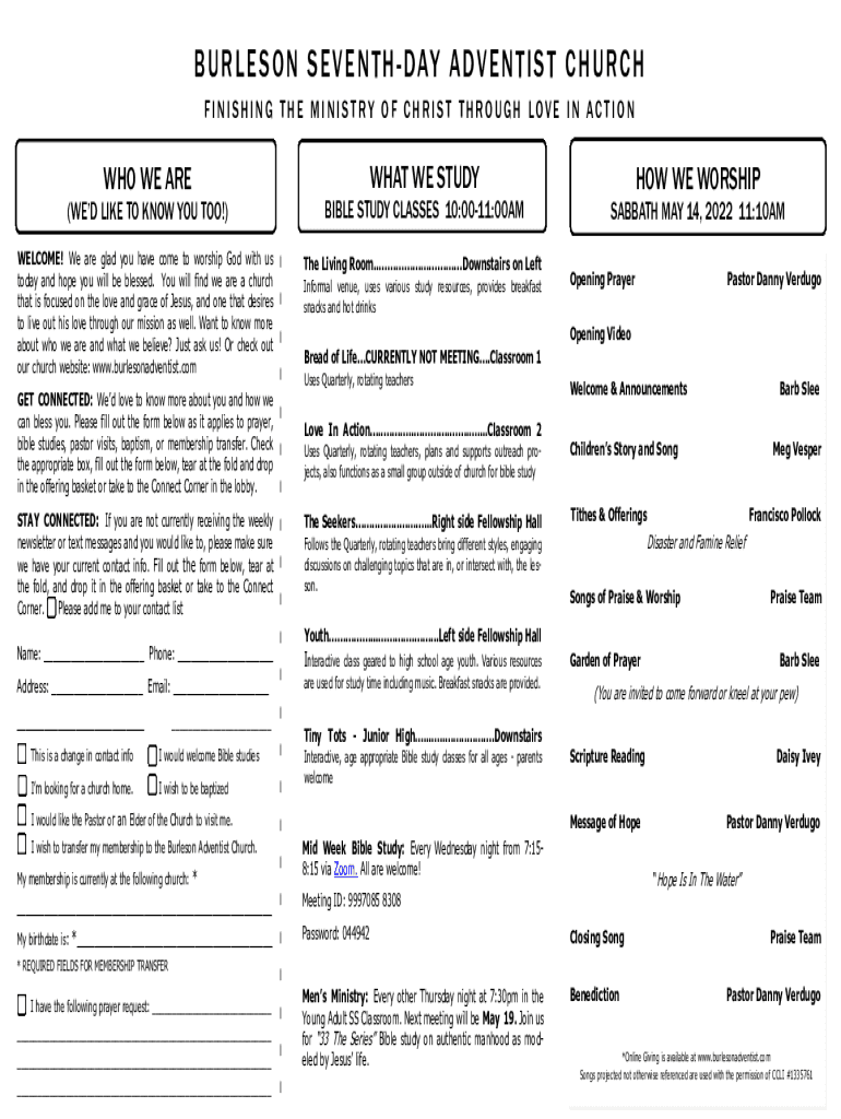Get the free Burleson SDA Church - Adventist Organizational Directory