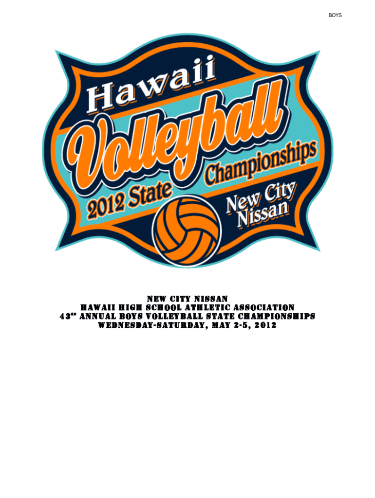 BOYS43 RENEW CITY NISSAN HAWAII HIGH SCHOOL ATHLETIC ASSOCIATION ANNUAL BOYS VOLLEYBALL STATE CHAMPIONSHIPS WEDNESDAYSATURDAY, MAY 25, 2012BOYSNEW CITY NISSAN / HHS AA 43RD ANNUAL VOLLEYBALL STATE