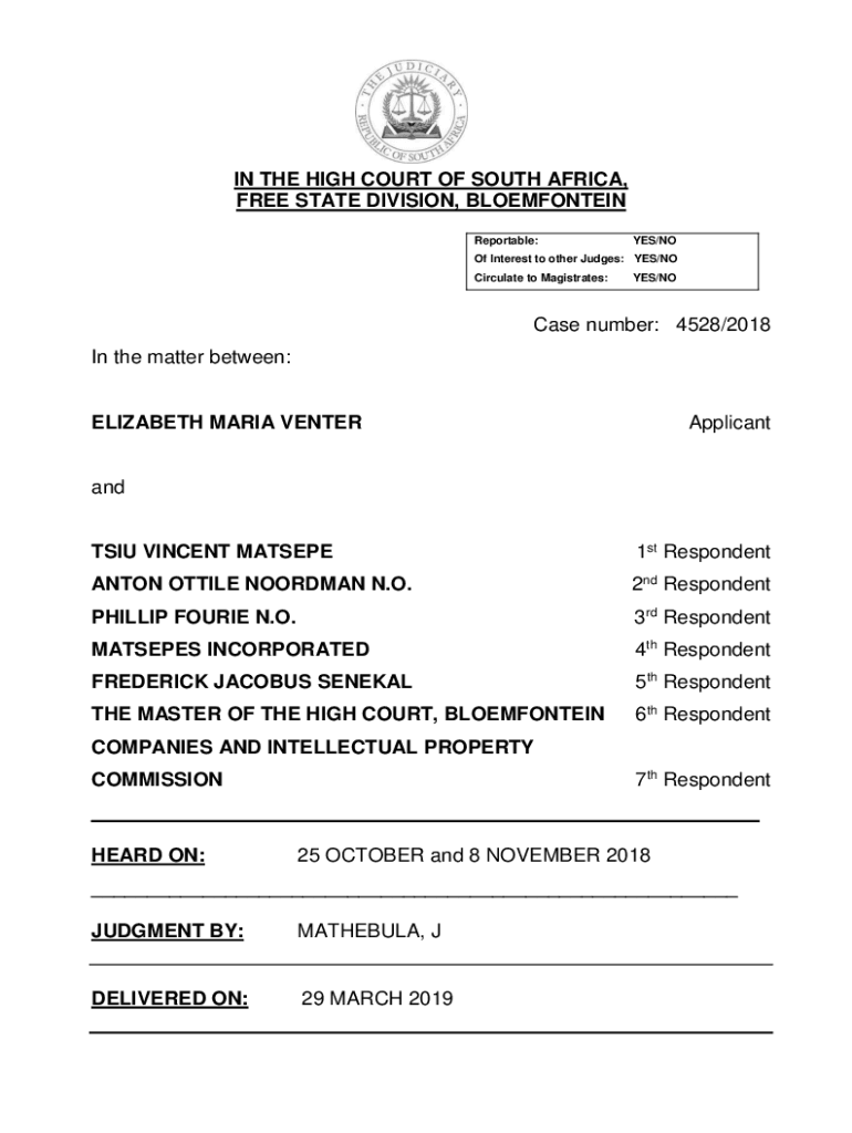 IN THE HIGH COURT OF SOUTH AFRICA,