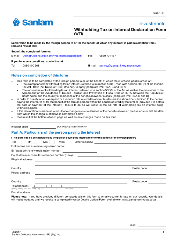 Get the free Withholding Tax on InterestSouth African Revenue Service - app sanlam co