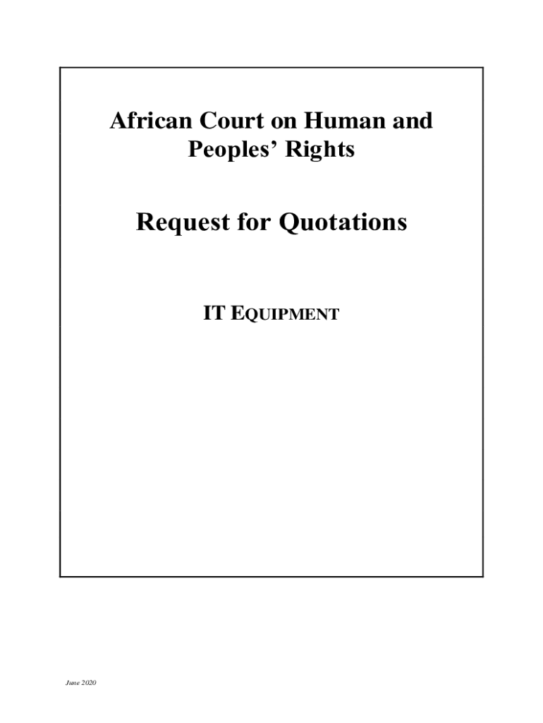 African Court on Human and Peoples RightsRequest for Quotations IT EQUIPMENT June 2020African Court on Human and Peoples Rights P. O Box 6274 Arusha, Tanzania Website: www.africancourt.org; Email