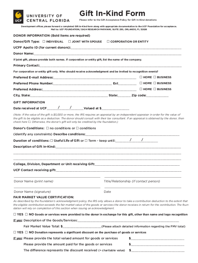 Get the free Gift In-Kind Form - University of Central Florida Foundation