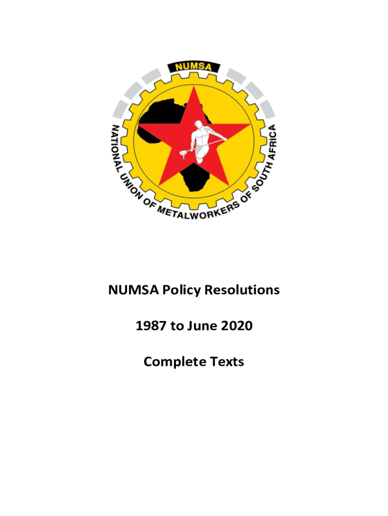 NUMA Policy Resolutions 1987 to June 2020 Complete TextsSection 7 NUMA Gender2Introduction This complete version of Nurses Resolutions contains all policy resolutions of National Congresses, Central