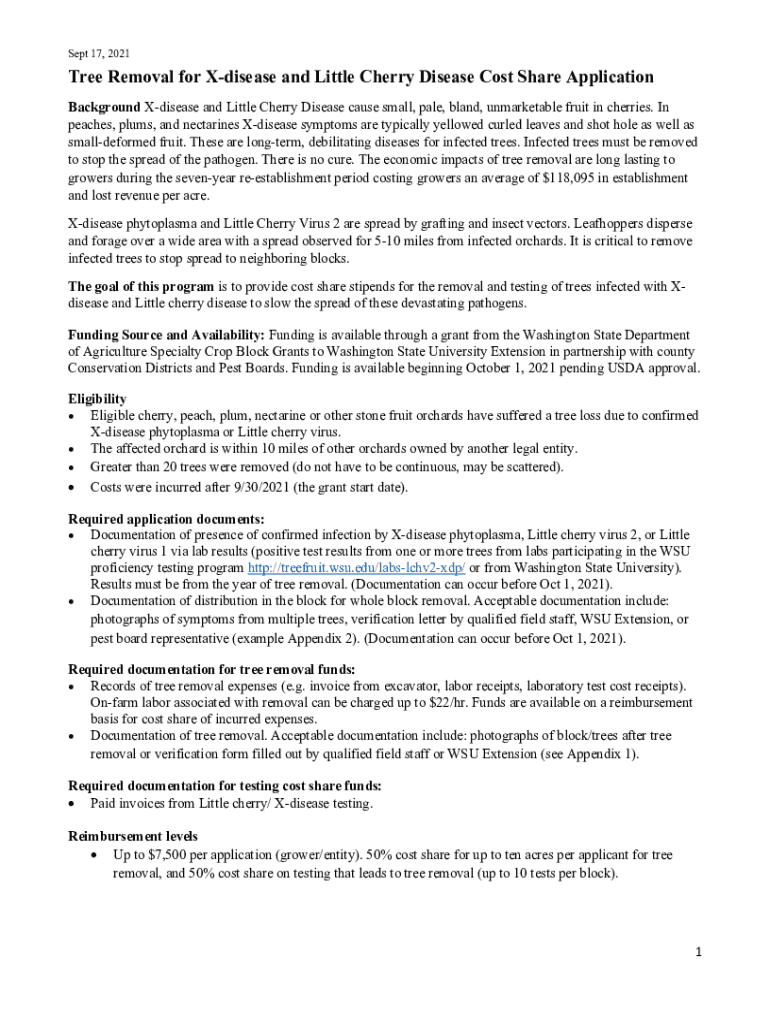 Sept 17, 2021Tree Removal for Disease and Little Cherry Disease Cost Share Application Background Disease and Little Cherry Disease cause small, pale, bland, unmarketable fruit in cherries. In peaches,