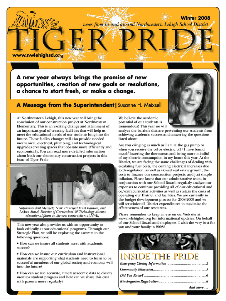 Winter 2008news from in and around Northwestern Leigh School DistrictTiger Pride www.nwlehighsd.orgA new year always brings the promise of new opportunities, creation of new goals or resolutions,