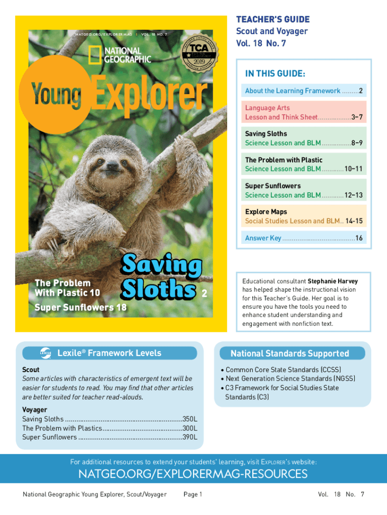 MAY 2019 N ATG E O. O KG/ E × P LO R E R M AG|TEACHER\'S GUIDE Scout and Voyager Vol. 18 No. 7VO L. 1 8 N O. 7 ECHOIC S C ESMADTEARACWHFOR THE CLASSROOMNING MAGNERE2019L AAZ IIN THIS GUIDE:About