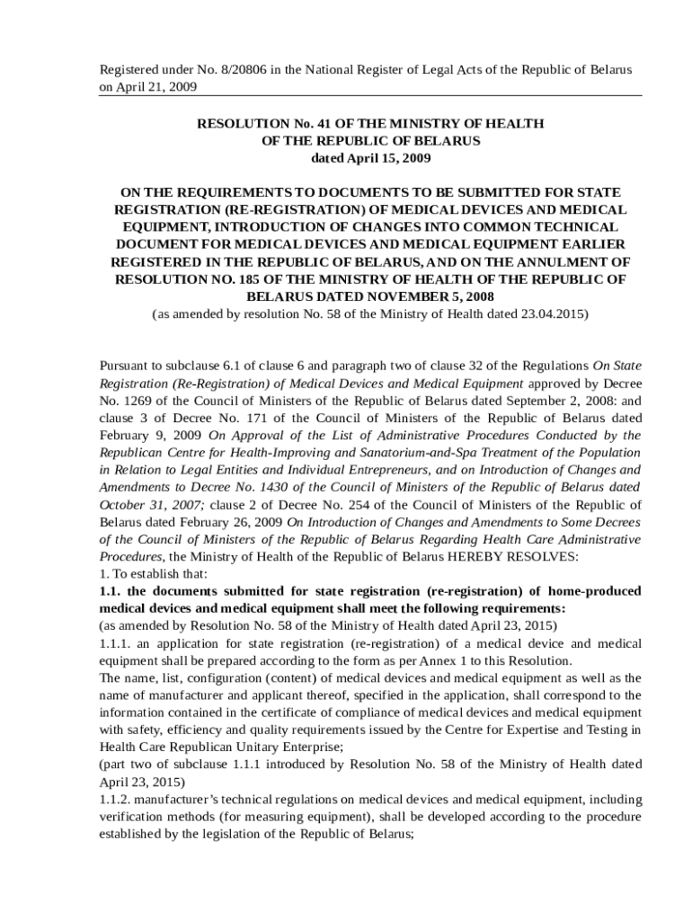 Template National Register of Legal Acts of the Republic of Belarus instructions