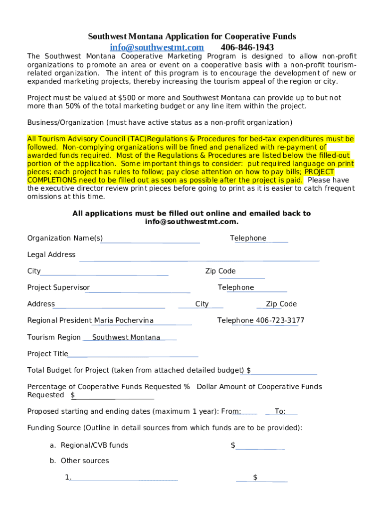 How to fill out New Mexico Tourism Department Cooperative Marketing (Co ...