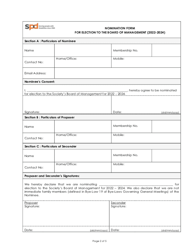Get the free NOMINATION FORM FOR ELECTION TO THE BOARD ... - SPD