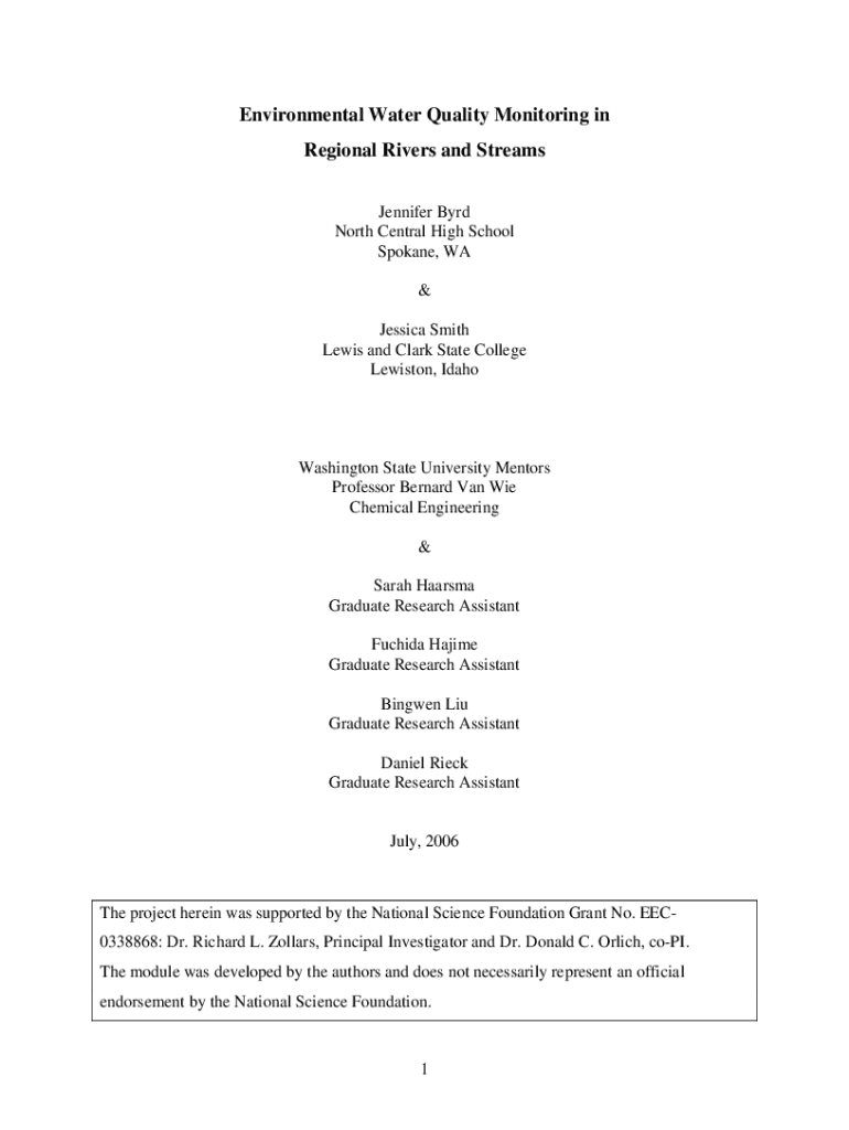 Get the free Environmental Water Quality Monitoring in Regional Rivers and Streams