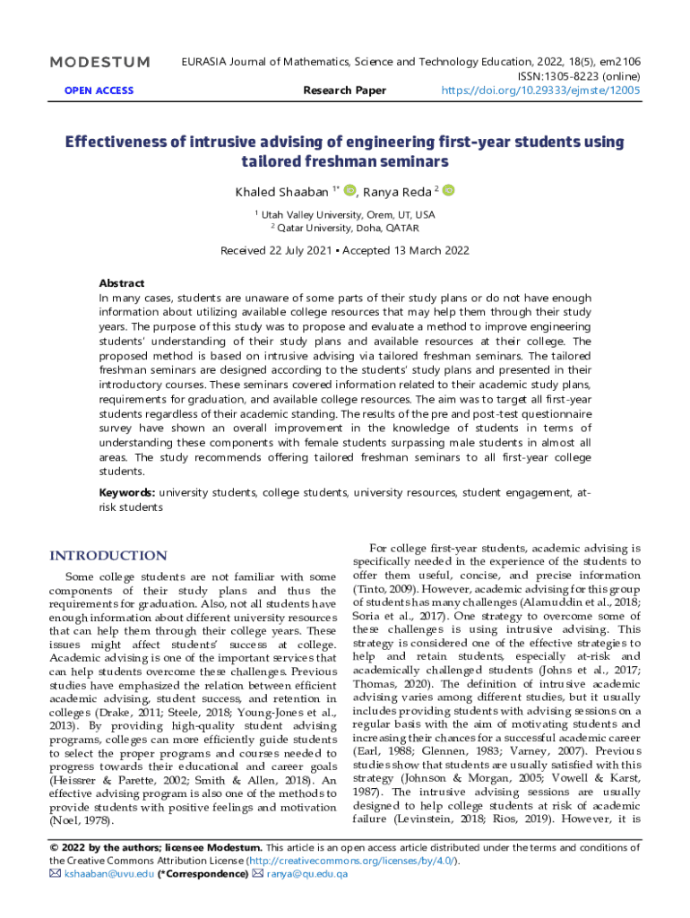 Get the free Effectiveness of intrusive advising of engineering first-year ...