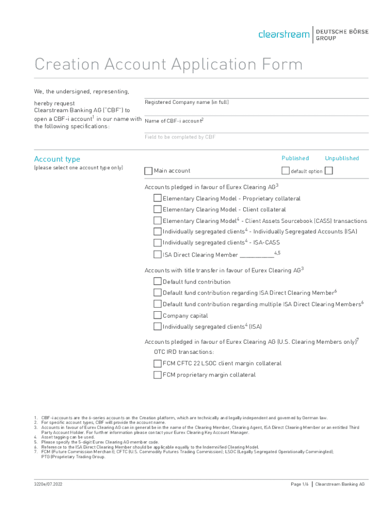 Creation Account Application Form