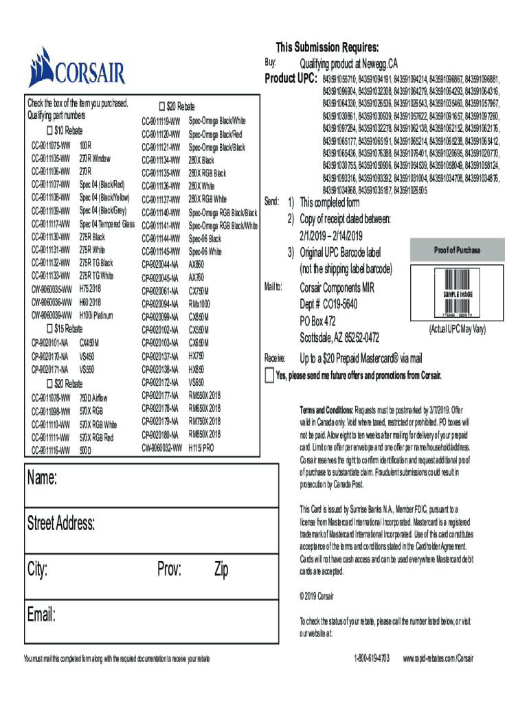 This Submission Requires: Qualifying product at New egg. CA Product UPC:843591055710, 843591094191, 843591094214, 843591096867, 843591096881, Buy: Check the box of the item you purchased. Qualifying